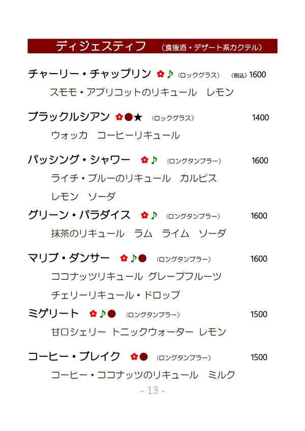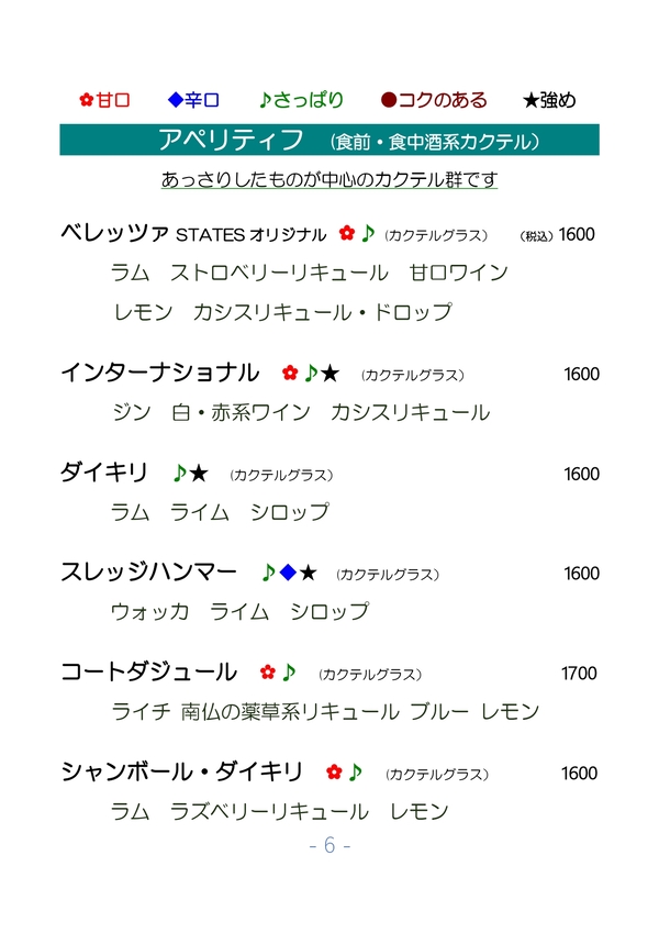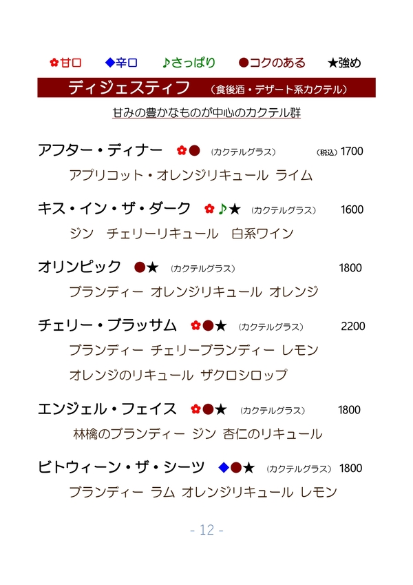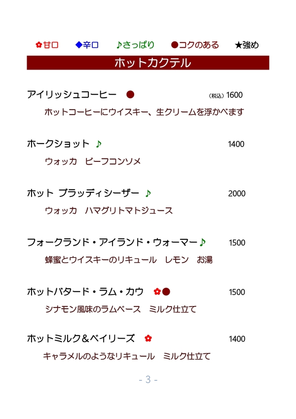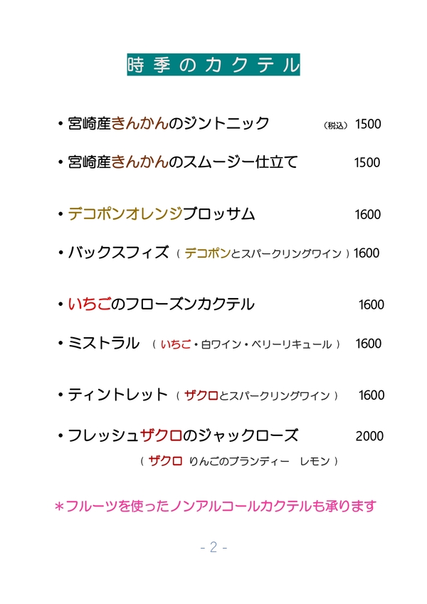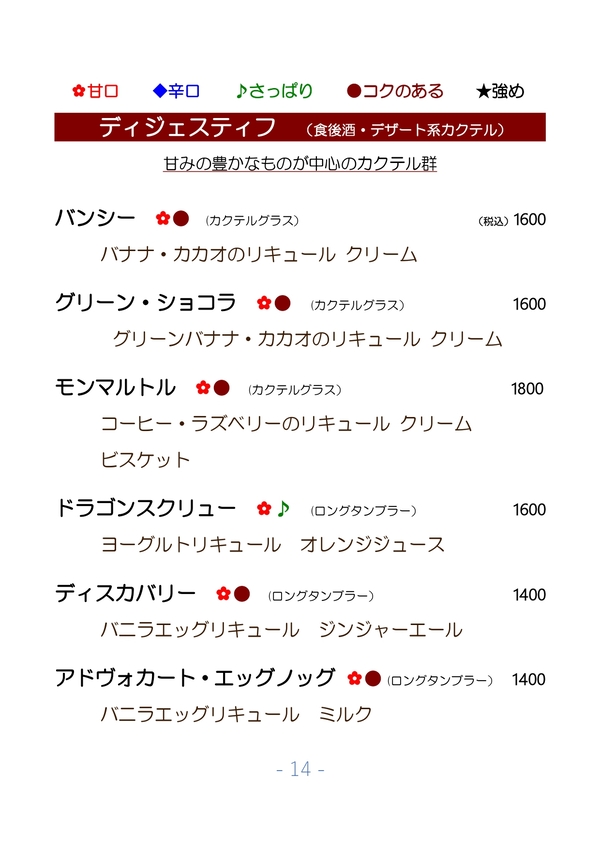 2026/01/25 カクテルメニュー全般更新しました。