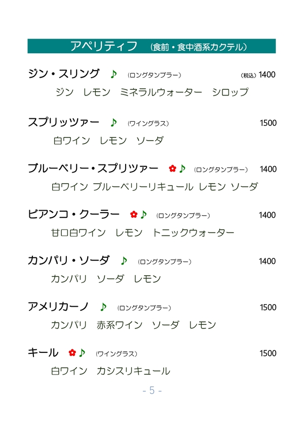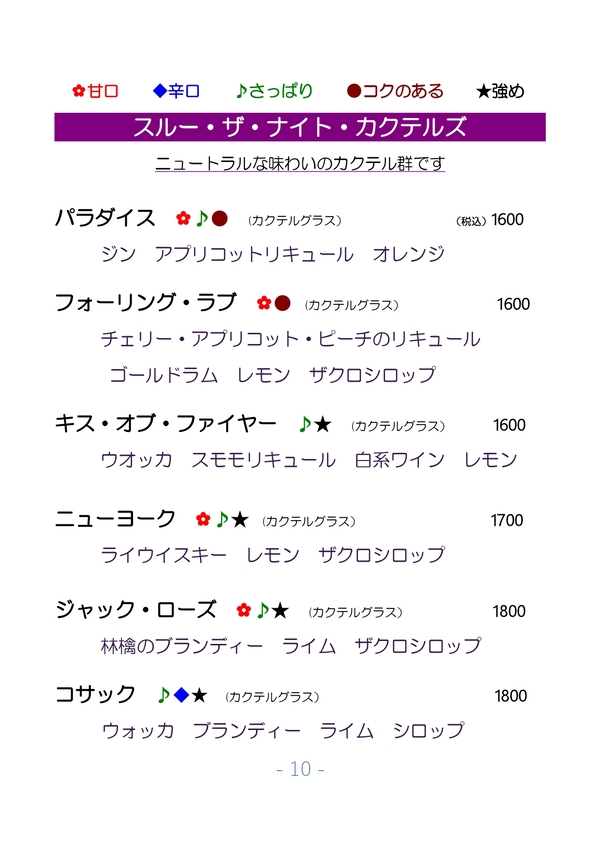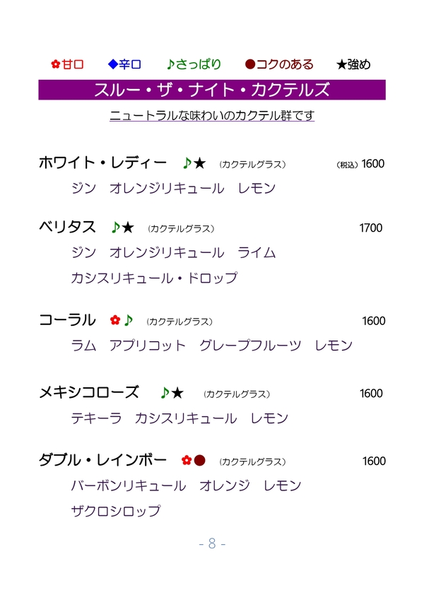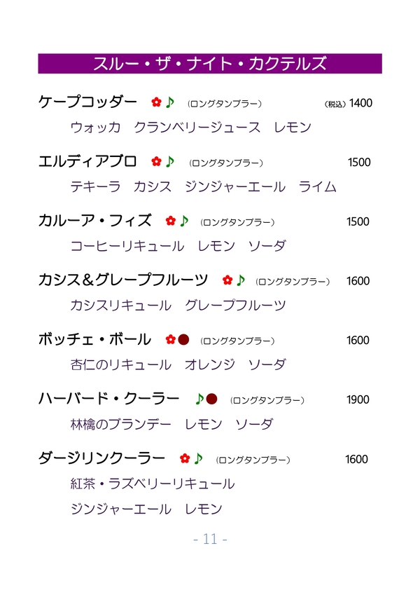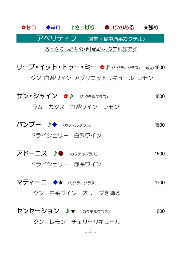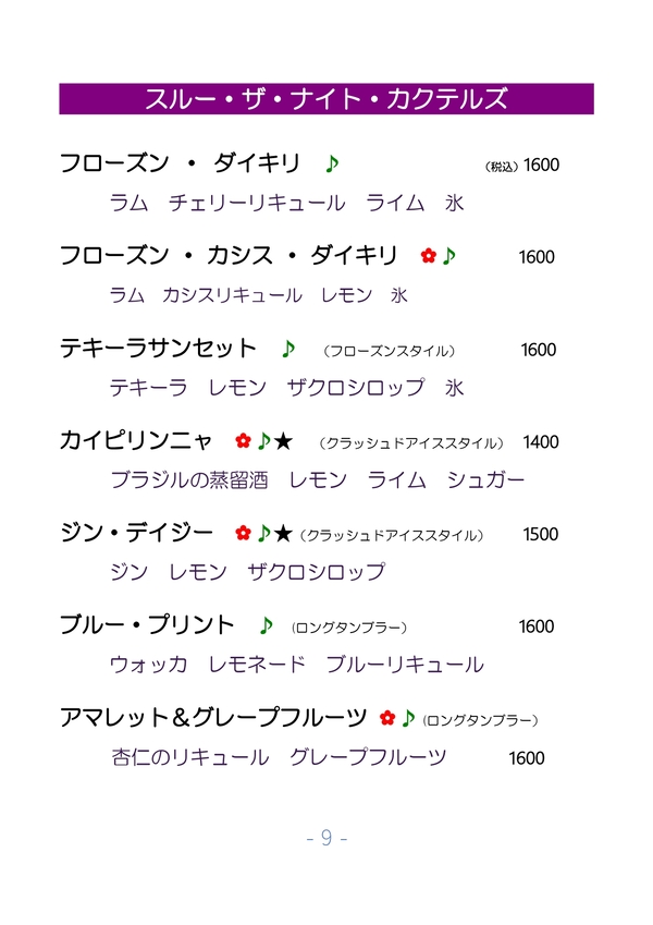 Menu Cocktails (Japanese)